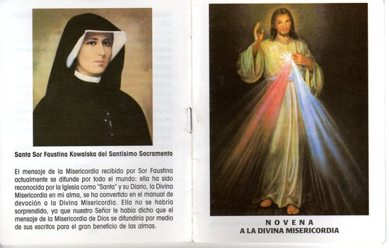 Notes:This novena* booklet is meant to be read aloud during the "Fiesta de la Divina Misericordia" (the Feast of the Divine Mercy or Divine Mercy Sunday) and it contains prayers that revolve around christian unity, prayers for clerical authorities, prayers for the non-devoted or "indifferent souls," prayers for people devoted to spread the cult to "Divina Misericordia," and prayers to diminish the suffering of souls in the purgatory. The Mercy of God is a devotion of Polish origins started by St. Faustina Kowalska; the devotion focuses on the christian philosophy of atonement. Followers perform internal and external acts of devotion: external: veneration of the Divine Mercy image (a painting by Adolf Hyla), the observation of the "Merciful hour" (by saying the "coronilla" and other prayers), the Feast of the Divine Mercy, and practicing merciful acts for the "less fortunate." --- (*) Novenas are a very popular devotion in Mexico and Latin America in general. They consist of prayers said nine successive days, reciting the rosary. People usually gather in a neighbour's house, and the host reads the prayers from a novena booklet, which works both as guide for the steps to follow and as a prayers book. There are several types of novenas and types of requests associated to a religious character or topic in each booklet.
