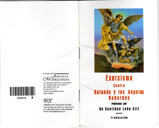 Author and/or Editor:Alternative Title (monographic): Exorcismo Contra Satanás y los Angeles [sic] Rebeldes: Publicado por Su Santidad León XIII. Traducción